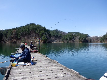 今日の美鈴湖は好く晴れていても、風が冷たく肌寒い天気でした。そんな中、ヘラ鮒釣りで6人、ワカサギ釣りでは10人の、お客様にお越し頂きました。