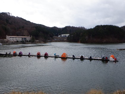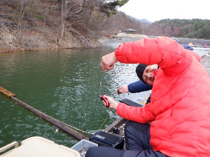 今日の美鈴湖は早朝から、台風を思わせる様な強風が吹き荒れ、浮き桟橋の為動きが烈しく釣り難い中、ヘラ鮒釣りで36人、ワカサギ釣りでは、18人のお客様にお越し頂きました。