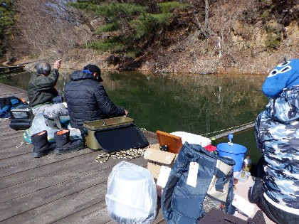 今日の美鈴湖は早朝の冷え込みがきつく、晴れていても気温があまり上がる事無く寒い天気でした。そんな中、ヘラ鮒釣りで14人、ワカサギ釣りでは、12人のお客様にお越し頂きました。