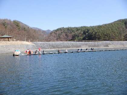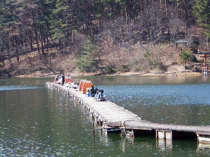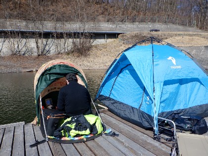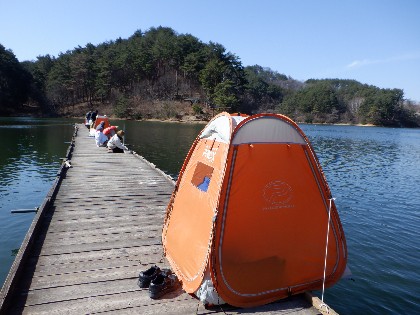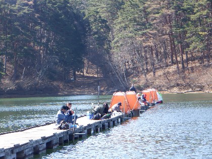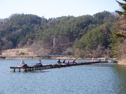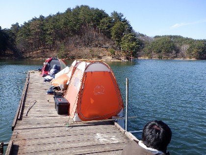 今日の美鈴湖は好く晴れて、風が吹くけれど暖かい天気でした。そんな中、ヘラ鮒釣りで10人、ワカサギ釣りでは44人の、お客様にお越し頂きました。