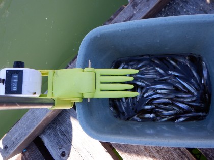 今日の釣果は50匹以下の方が大半でした。又、100匹~200匹の釣果の方が5人、200匹~300匹の方は4人、300匹超えは3人で400越えが2人、最高の方が470匹の釣果でした。