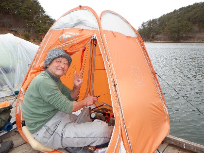 今日の美鈴湖は日中でもマイナスの気温で、風も吹き寒く釣り難い天気でした。そんな中、ヘラ鮒釣りで1人、ワカサギ釣りでは10人の、お客様にお越し頂きました。