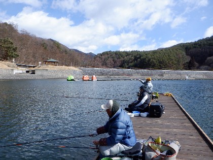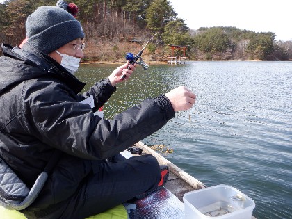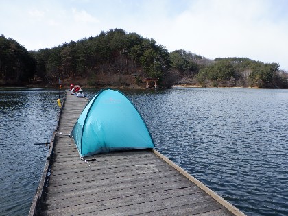 今日の美鈴湖は強風が吹き、釣り難い天気でした。そんな中、ヘラ鮒釣りで3人、ワカサギ釣りでは17人のお客様にお越し頂きました。