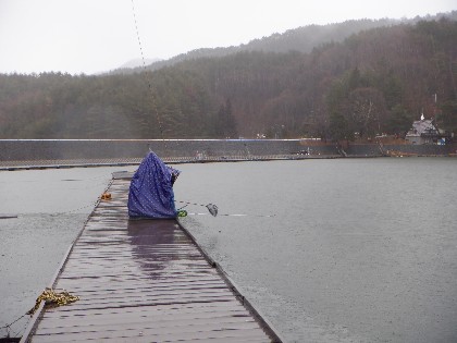 今日の美鈴湖は雨が降る天気でした。そんな中、ヘラ鮒釣りで1人、ワカサギ釣りでは、4人のお客様にお越し頂きました。