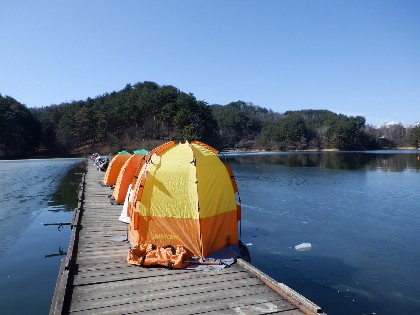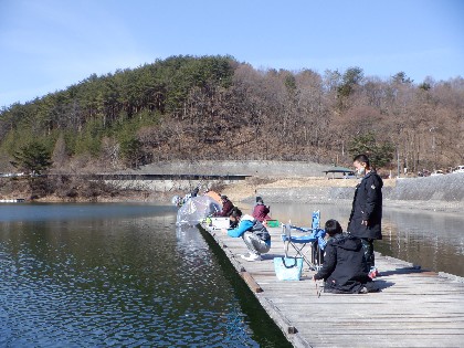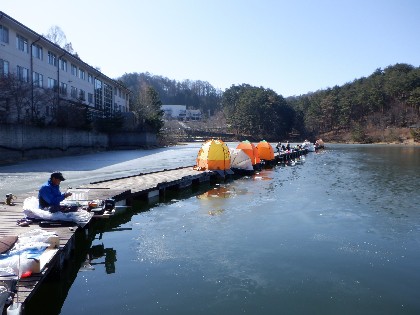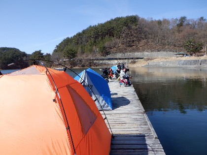 今日も美鈴湖は暖かく、テントが要らない天気でした。そんな中、ヘラ鮒釣りで17人、ワカサギ釣りでは子供さんを含め126人の、お客様にお越し頂きました。