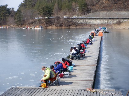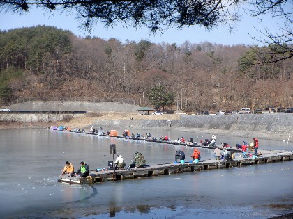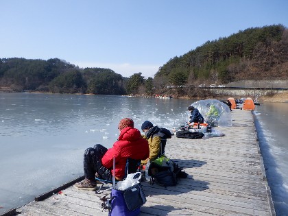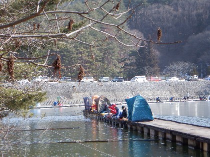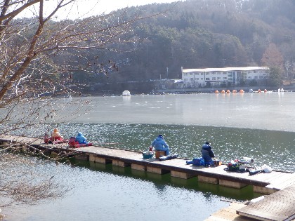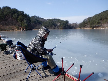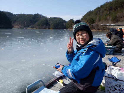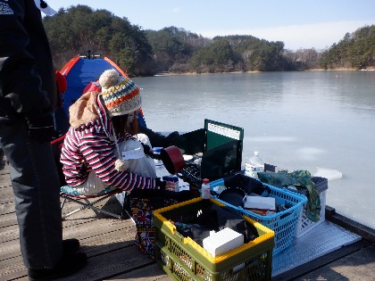 今日の美鈴湖は好く晴れて、風があまり吹く事無く、暖かさが感じられる日でした。そんな中、ヘラ鮒釣りで18人、ワカサギ釣りでは128人、お客様にお越し頂きました。