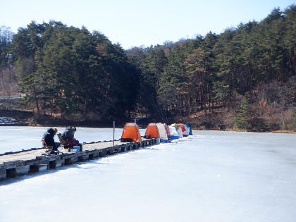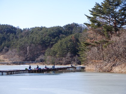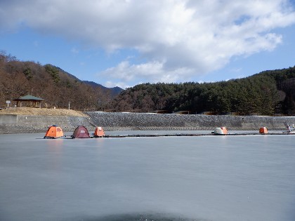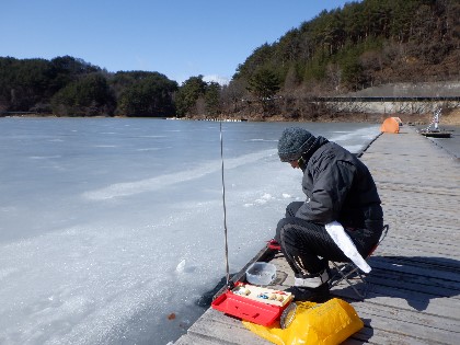 今日の美鈴湖は晴れていても風の為、よりいっそう寒く感じる日でした。そんな中、ヘラ鮒釣りで9人、ワカサギ釣りでは26人の、お客様にお越し頂きました。