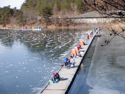 今日の美鈴湖は午後になっても、気温が上がらず寒い天気でした。そんな中、ヘラ鮒で11人、ワカサギ釣りではお子供さんを含め、103人のお客様にお越しいただきました。
