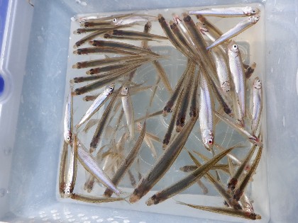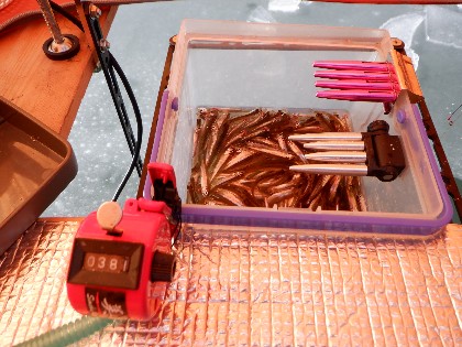 尚、レイク桟橋の方は、殆んどの方が250匹オーバーの釣果で、600匹超えの方がいらっしゃいました。 又、えん堤桟橋も500匹越えの方が2人、最高の釣果の方は661匹でした。(レイク桟橋では、昼過ぎの釣果のほうが良かった様です。)
