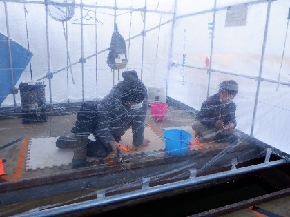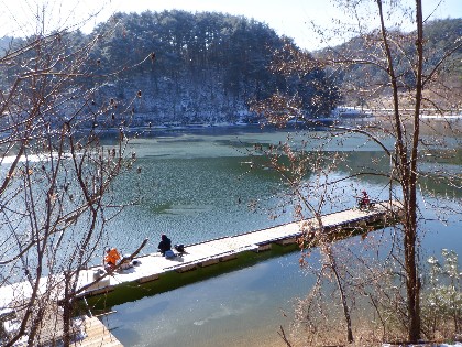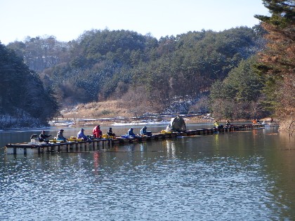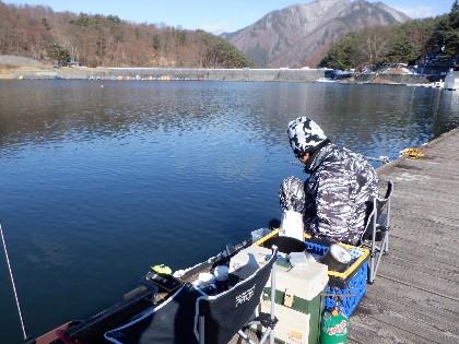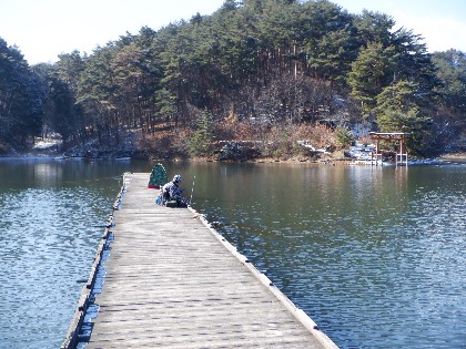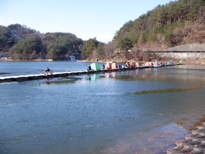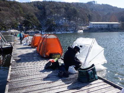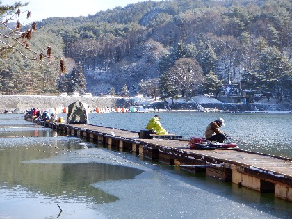 今日の美鈴湖は夜半に雪が降り、湖面に薄氷が張りました。そんな中、ヘラ鮒釣りで14人、ワカサギ釣りでは59人の、お客様にお越し頂きました。