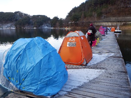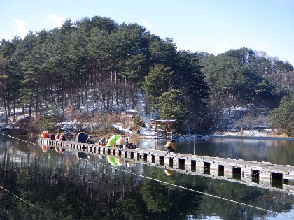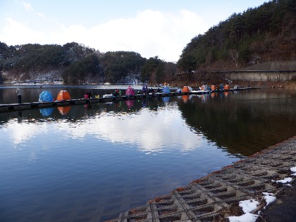 今日の美鈴湖は好く晴れていても、気温が0度以下の真冬日でした。そんな中、ヘラ鮒釣りで13人、ワカサギ釣りでは子供さんを含め、58人のお客様にお越し頂きました。