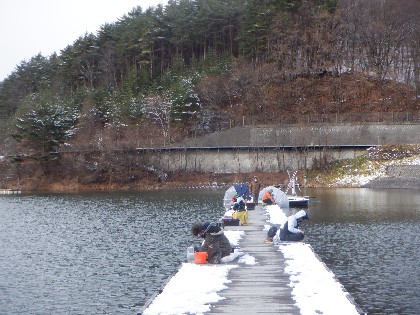 今日の美鈴湖は、曇りで気温も上がらない寒い天気でした。そんな中、ヘラ鮒釣りのお客様はいらっしゃいませんでした。又、ワカサギ釣りは、27人のお客様にお越し頂きました。
