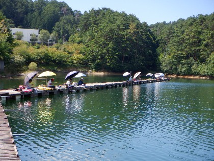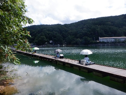 今日の美鈴湖は晴れても最高気温が30度以下で、松本市街地より3度くらい低く、日陰では過ごし易い天気でした。そんな中、県内外から25人のお客様にお越し頂きました。