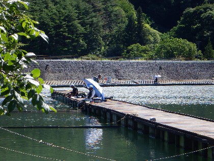 今日の美鈴湖は昨日同様に好く晴れ、時おり突風が吹き釣り難い天気でした。そんな中、県内外から27人のお客様にお越し頂きました。