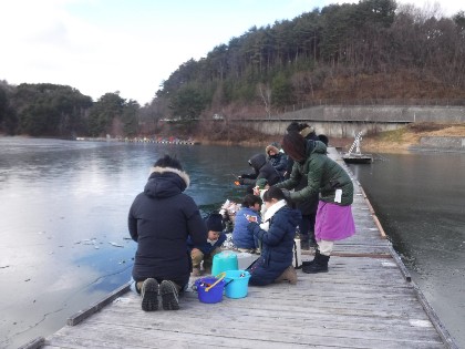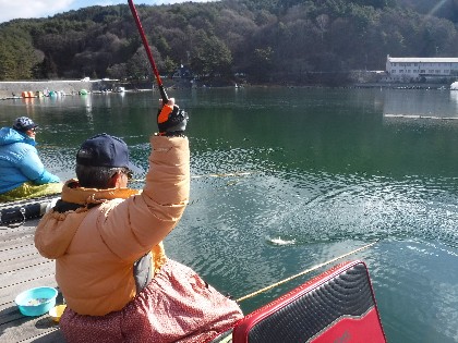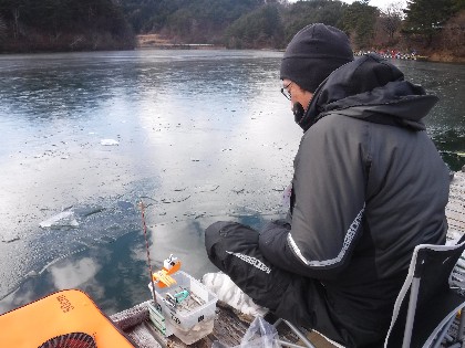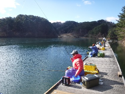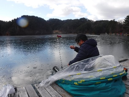 今日の美鈴湖は晴れて、昨日と違い暖かく感じられる日でした。そんな中、ワカサギで71人、ヘラ鮒釣りでは15人、のお客様にお越し頂きました。