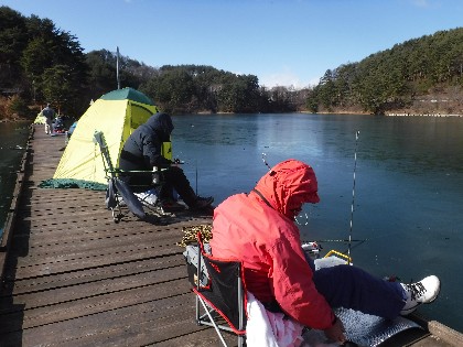 ワカサギではえん堤桟橋、レイク桟橋共に昨日より釣果が上がりませんでした。又、100匹超えの方が5人いらっしゃいました。