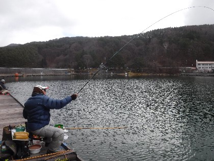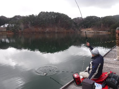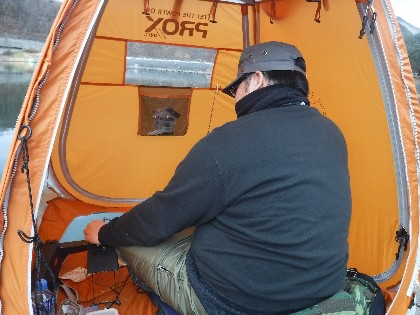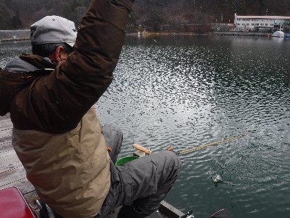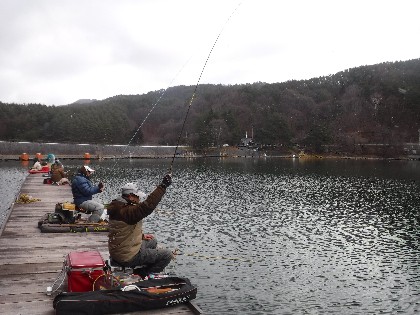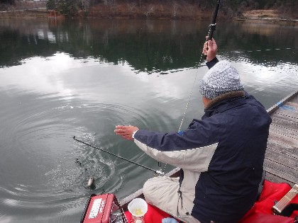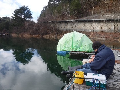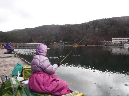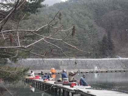 今日の美鈴湖は、早朝小雪が舞う寒い天気でした。そんな中、ワカサギ釣りで15人、ヘラ鮒釣りでは9人のお客様にお越し頂きました。