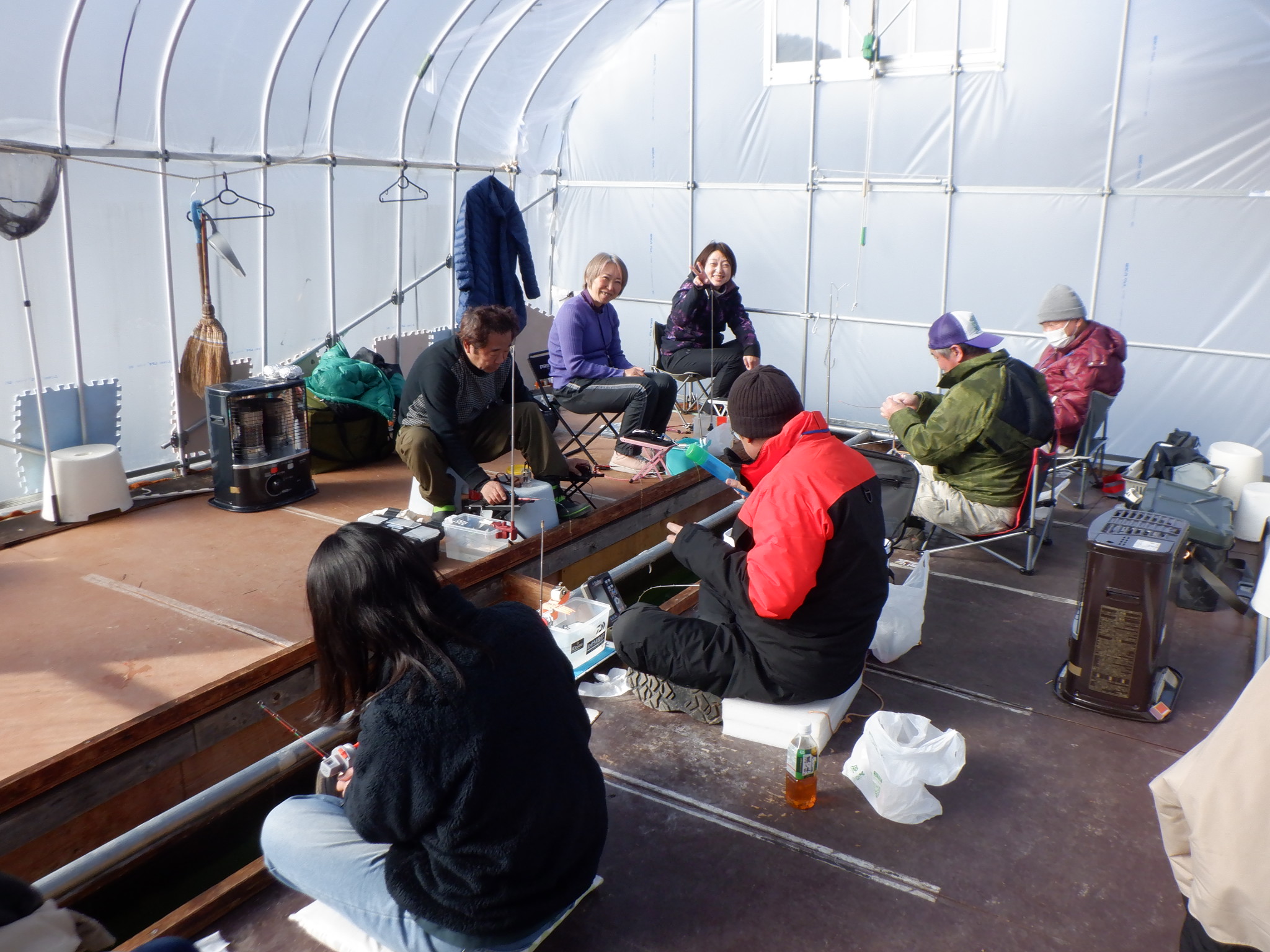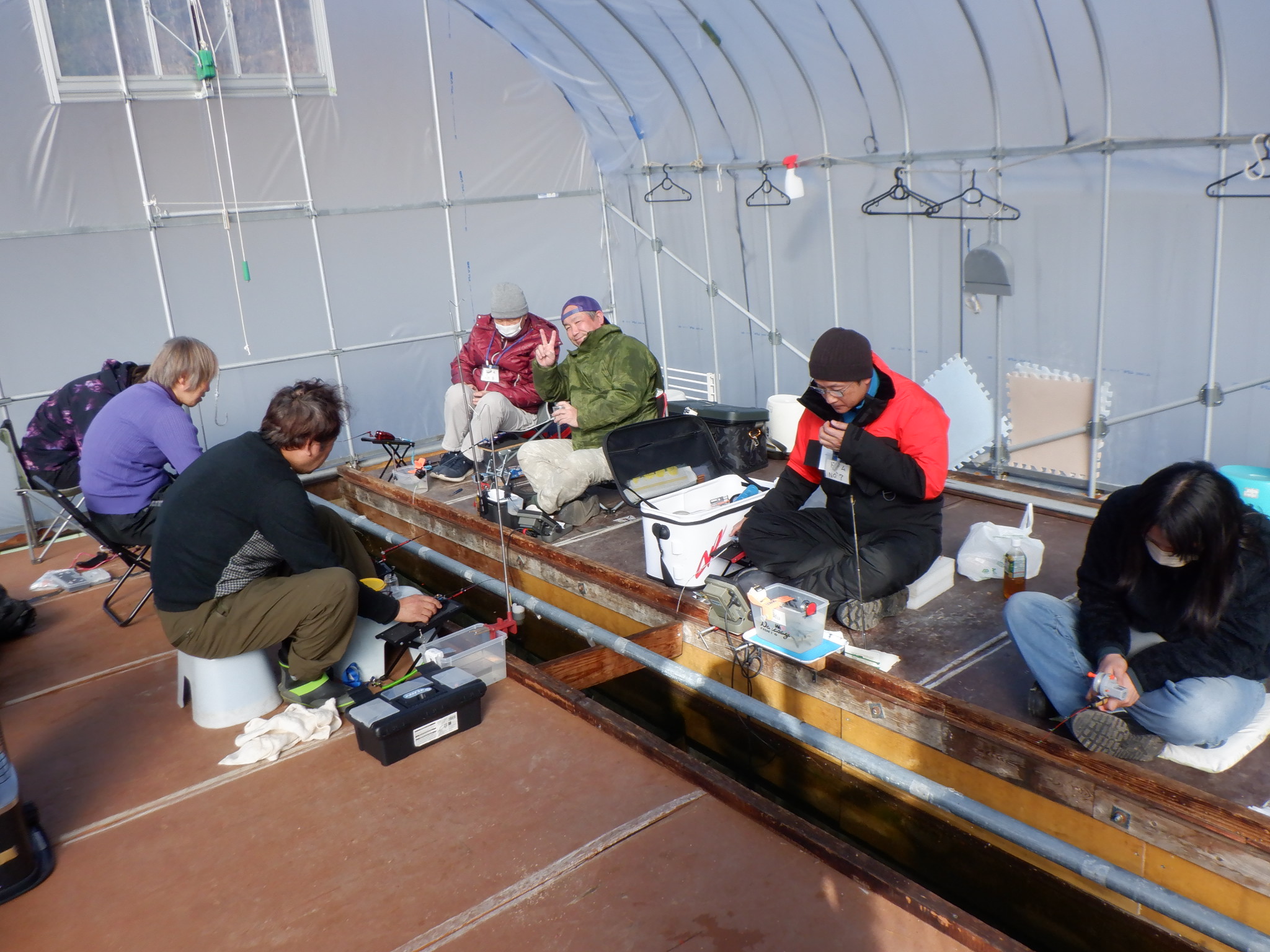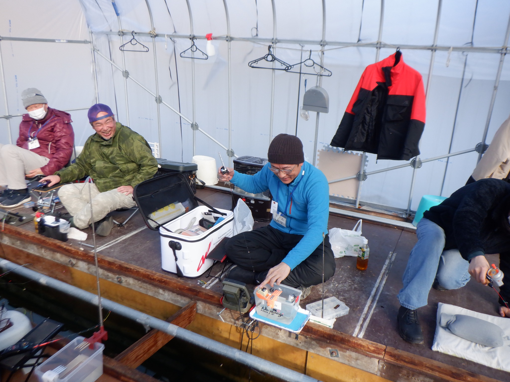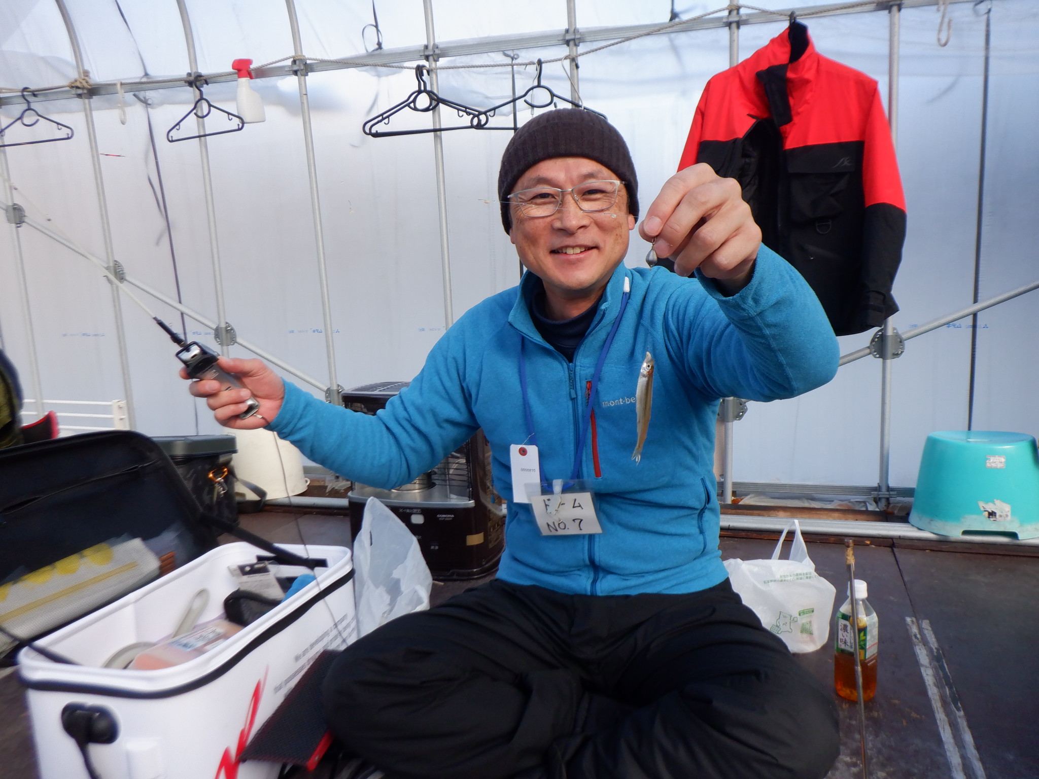 今日の美鈴湖は時おり強風が吹き、テントが煽られて釣り難い中、17人のお客様にお越しいただきました。
