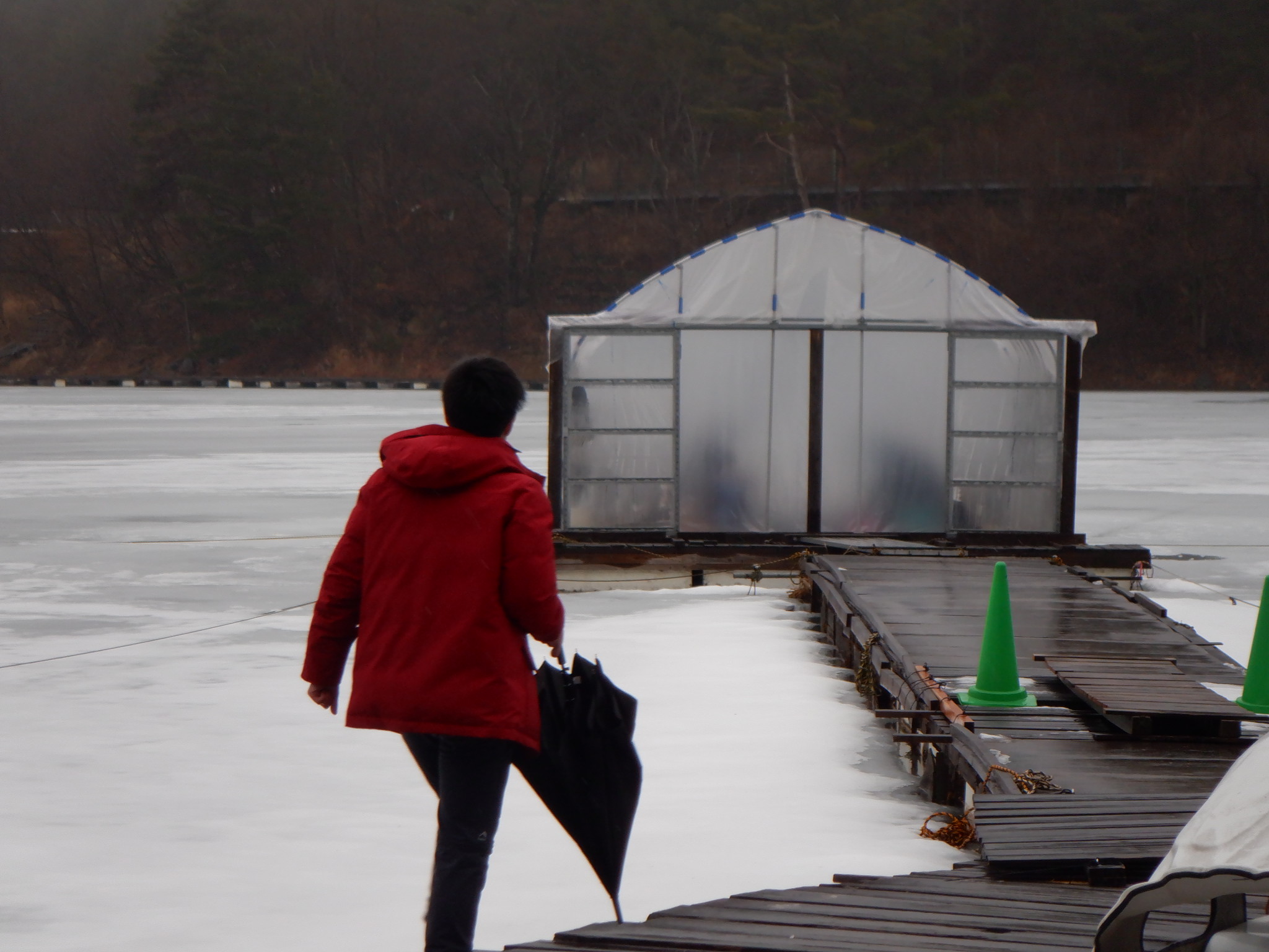 今日の美鈴湖は、霧に覆われ視界が効きにくい中、45人のお客様にお越しいただきました。