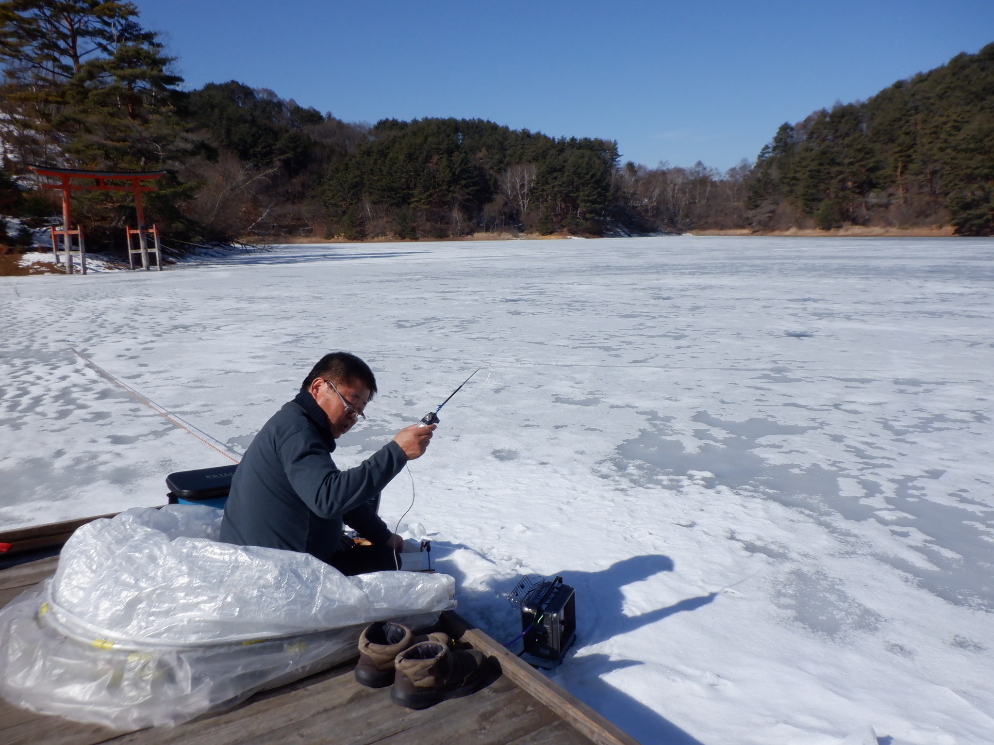 今日の美鈴湖は、よく晴れて穏やかな釣り日和の中、15人のお客様にお越しいただきました。