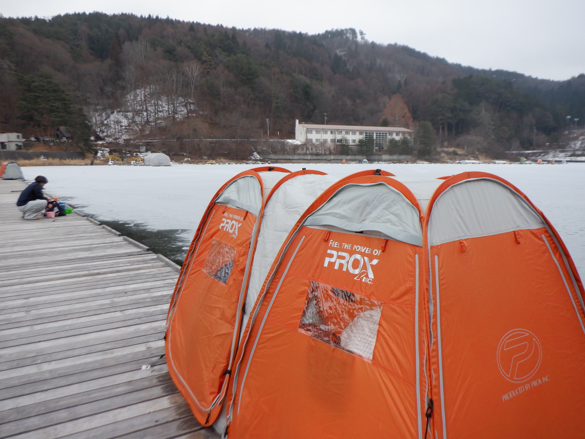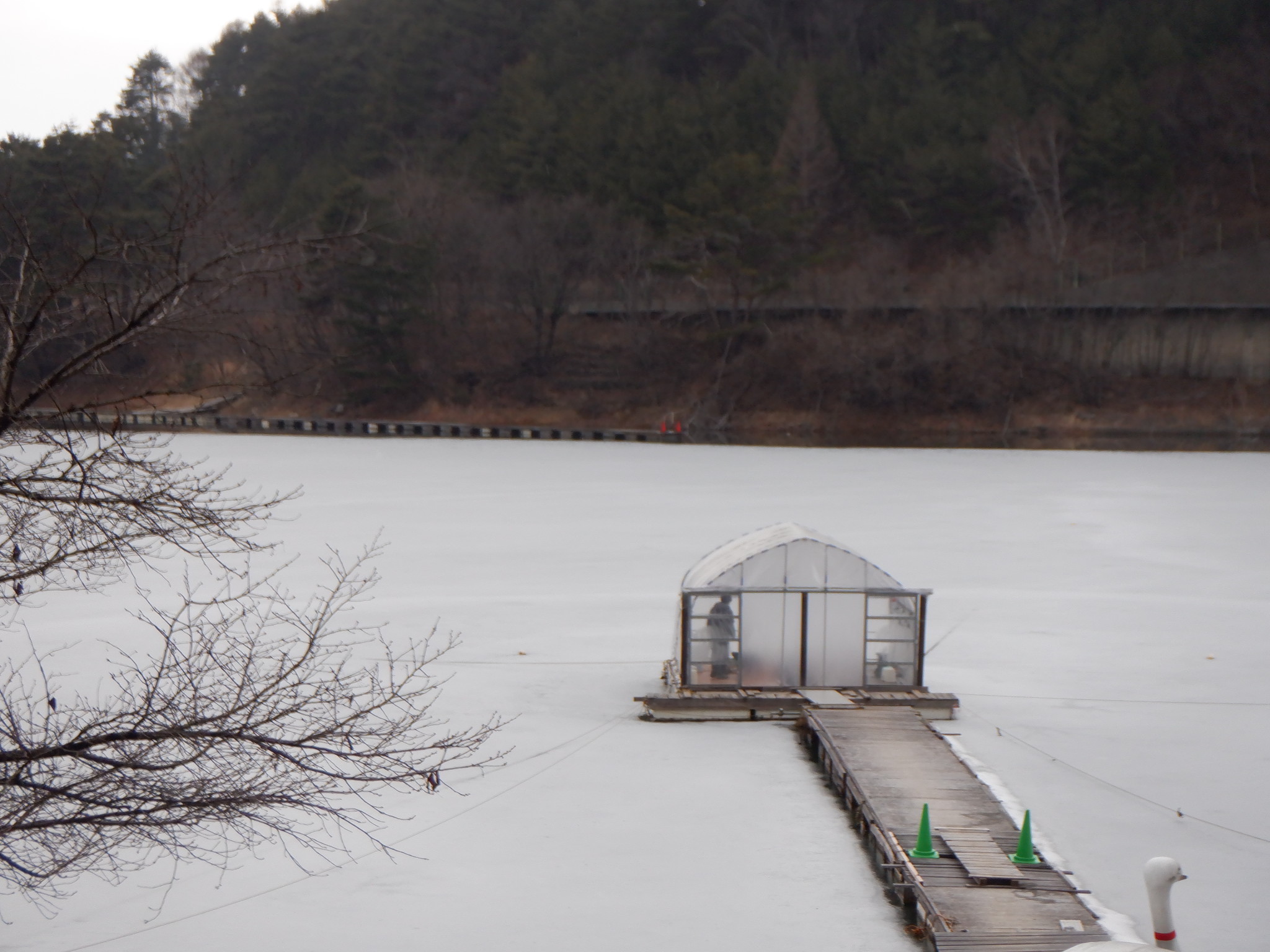 今日の美鈴湖は、日当たりの良いところは氷が解け始める中、22人のお客様にお越しいただきました。