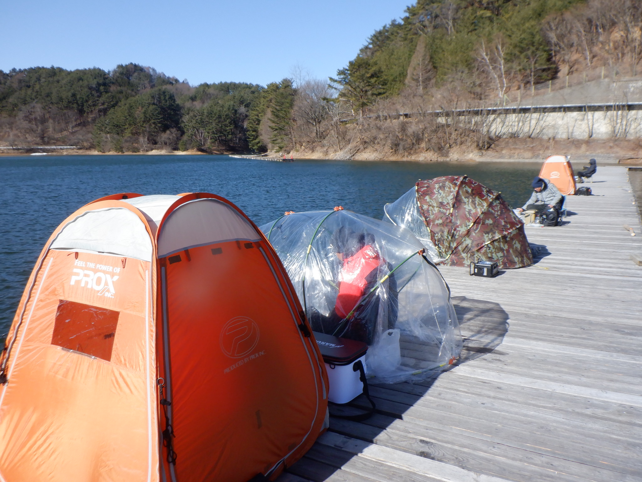 今日の美鈴湖は、よく晴れていても強風が吹く釣り難い天気でした。そんな中、ワカサギ釣りは50人、へら鮒釣りのお客様はいらしっしやいませんでした。