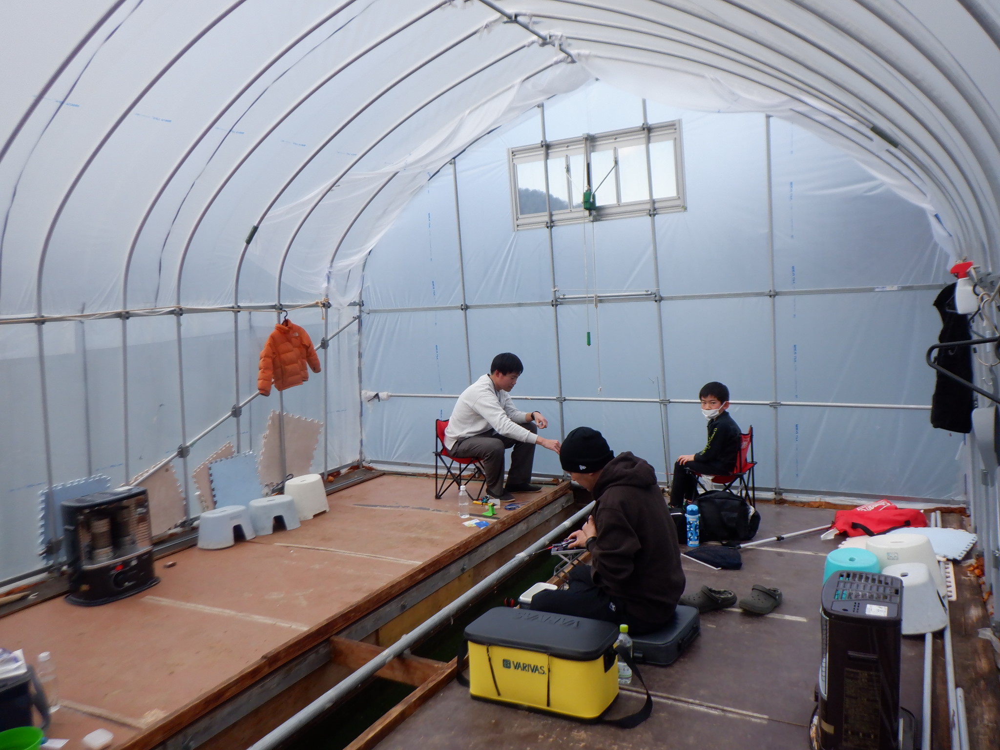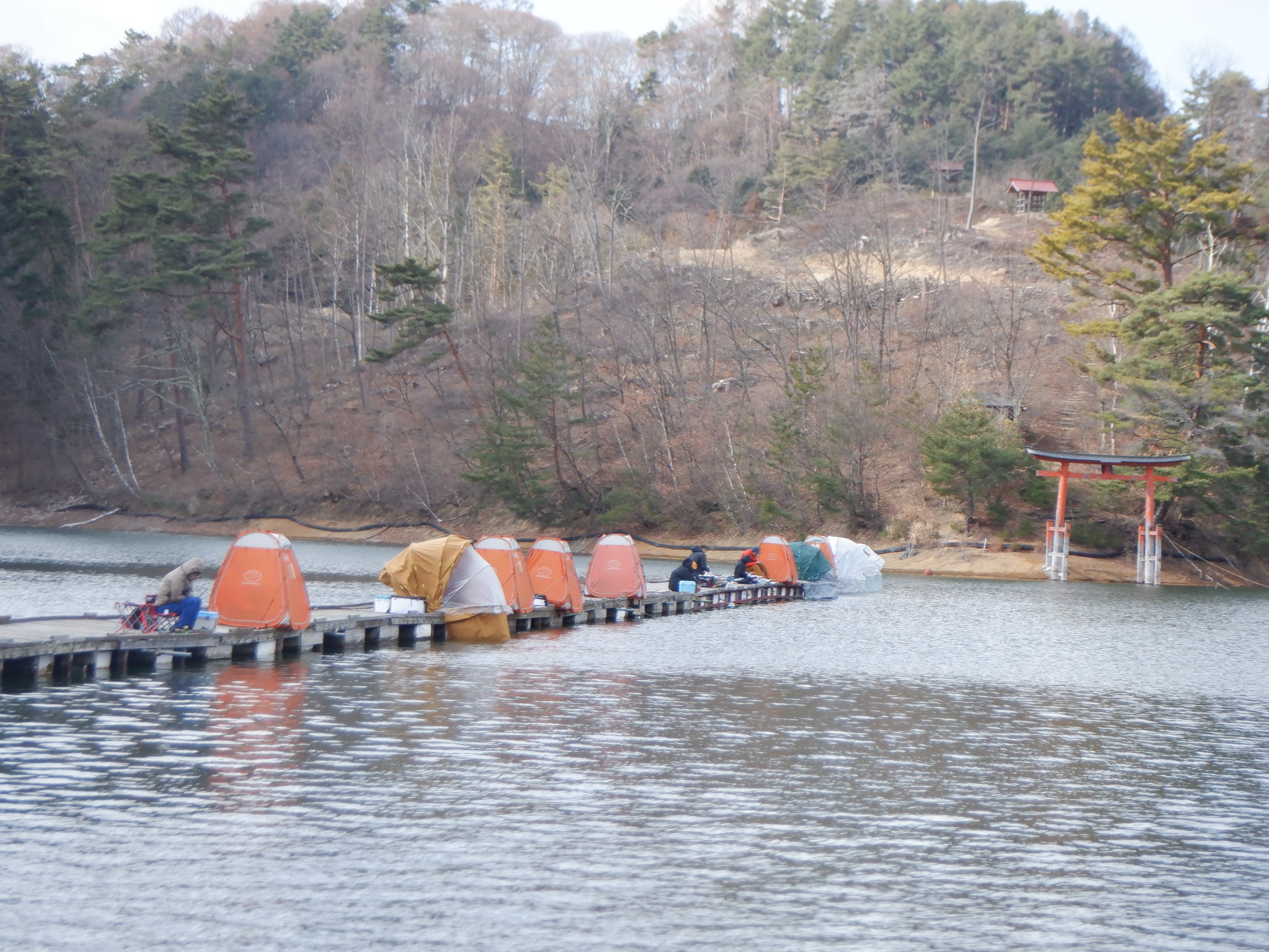 今日の美鈴湖は、午後には気温が13℃になりましたが、強風が吹く荒れた天気でした。そんな中、ワカサギ釣りは33人、へら鮒釣りでは、どなた様もお越しになりませんでした。
