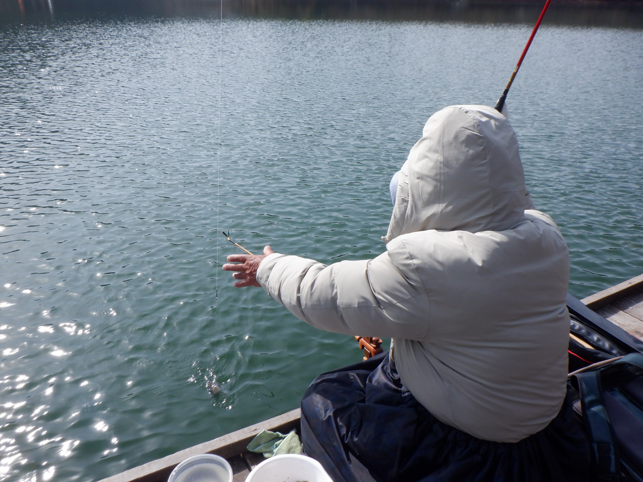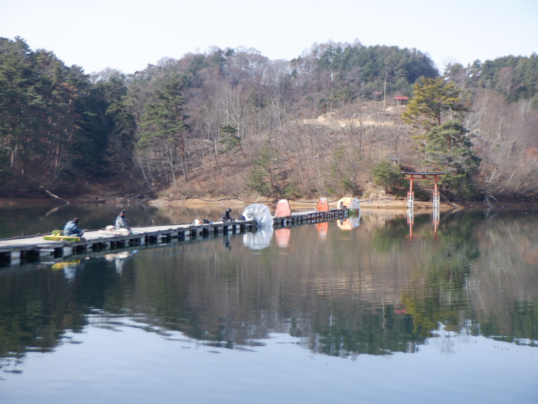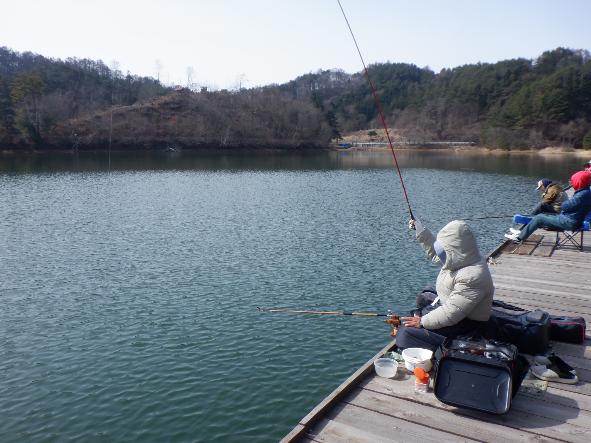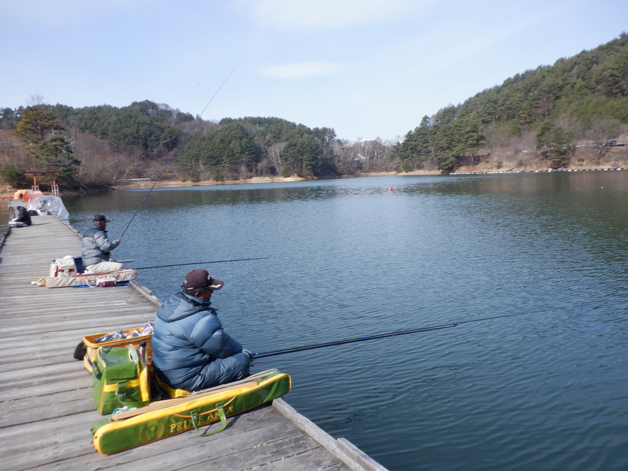 今日の美鈴湖は、午後には気温が10℃を超える中、ワカサギ釣りは8人、へら鮒釣りでは13人の、お客様にお越しいただきました。